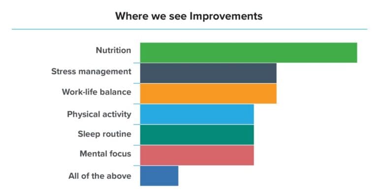 Our programs focus on employee-reported outcomes that reflect real-life behaviour change and day-to-day wellbeing. Results are aggregated and anonymized to support insight without individual tracking.